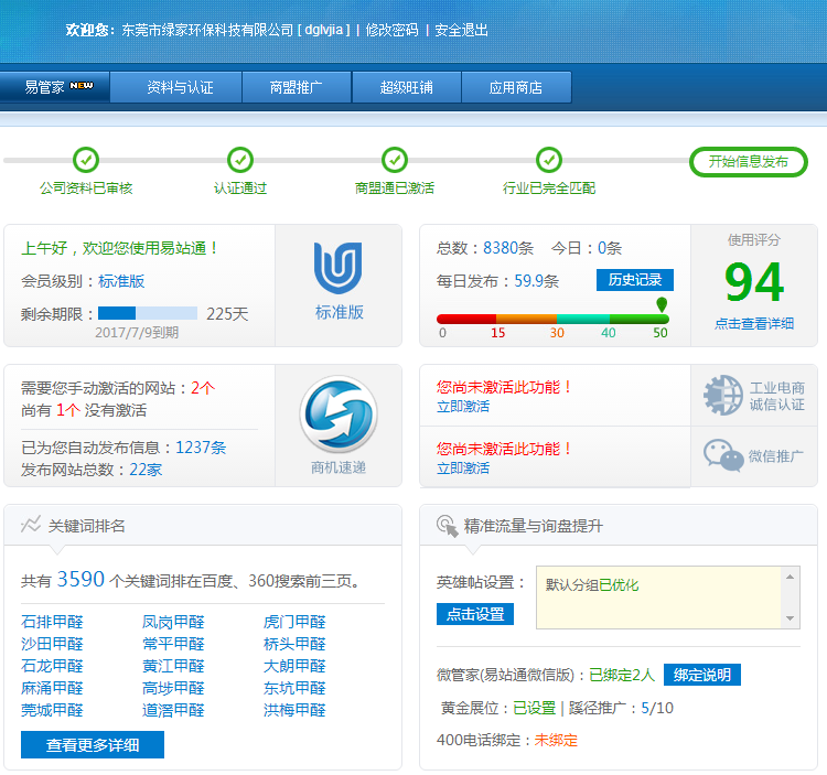 公司自成立以来,以“开发最符合市场需求的产品、打造最具竞争力的多赢模式”为经营理念,以“保证合作伙伴的利益不受损害是我们一切决策的前提”为经 营宗旨,立足科技及环保产业,锐意进取,努力创新。同时,推行低投入、低风险的合作模式,带动并扶持了一批立志于家居环保领域的企业和个人,搏击商海,共 同发展。到目前为止,我公司在全国各省市一级代理、经销商数量已达到二百家,营销网络遍布全国各地,形成了产销两旺的良好态势。