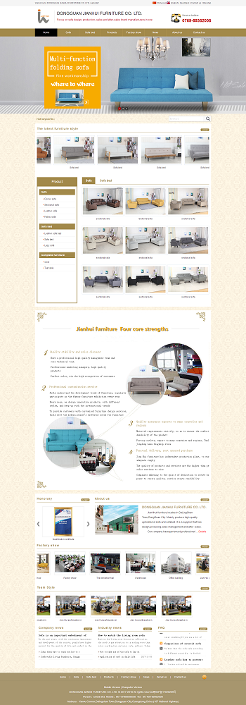 东莞市建辉家具位于东莞市大岭山镇。主要生产优质沙发,沙发床。本公司是一家集设计、生产、销售管理及售后服务于一体的供应商。