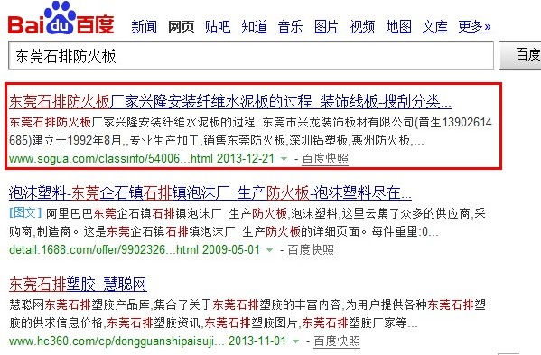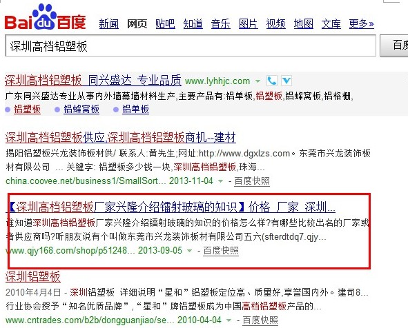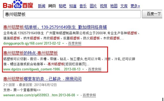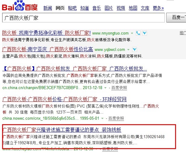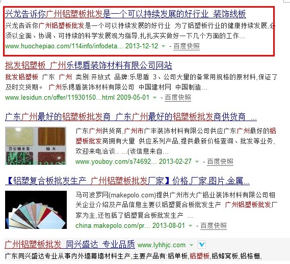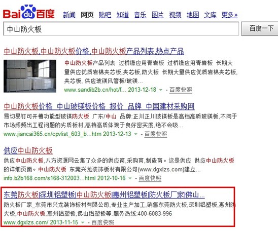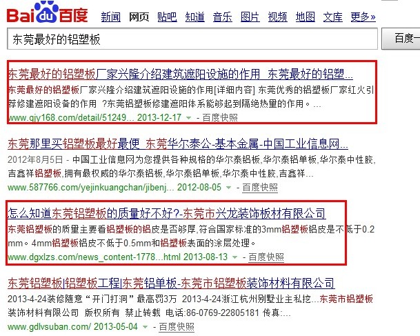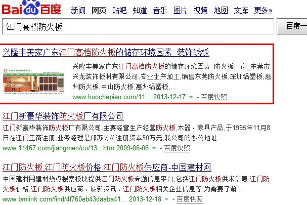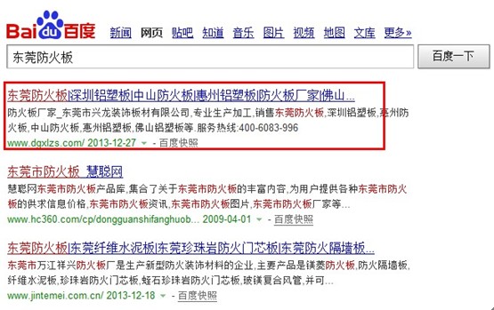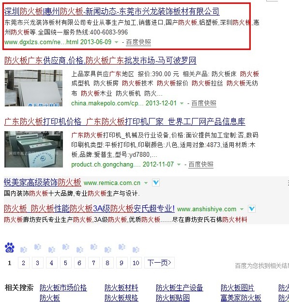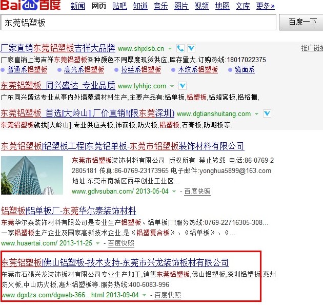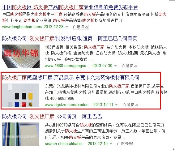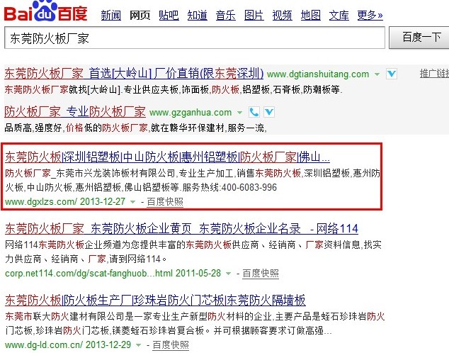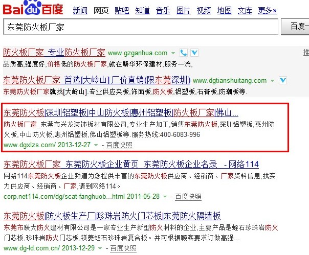 东莞市兴龙装饰板材有限公司于2013年12月6号与东莞谷得网络科技有限公司经过深入的了解最终签订了合作协议,截止到目前一个月不到,现已有五十几个关键词排在百度、360的首页
