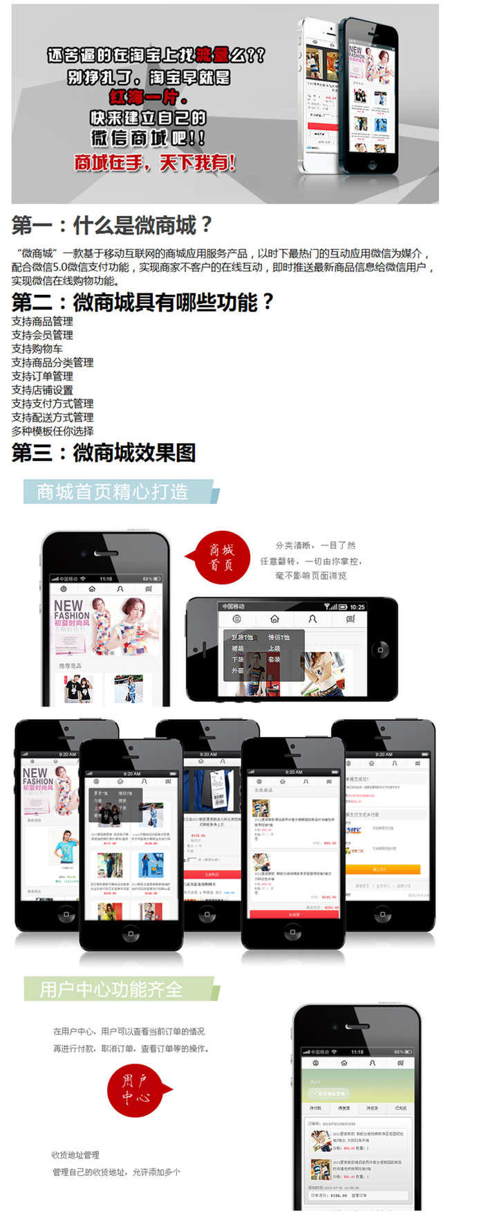 微信商城是微网网络基于微信而研发的一款社会化电子商务系统,同时又是一款传统互联网丶移动互联网丶微信丶易信四网一体化的企业购物系统